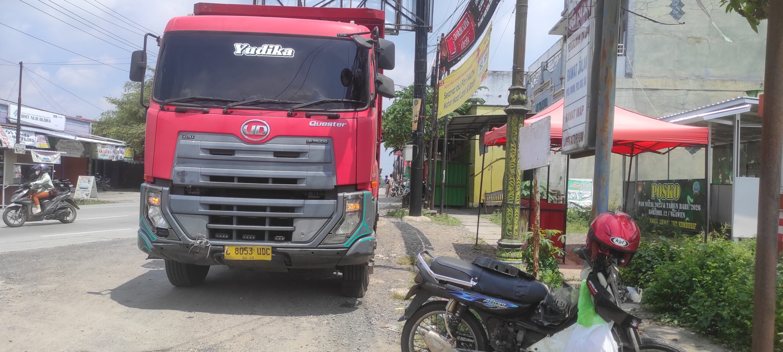 Blora, suarajateng.co.id – Kecelakaan lalu lintas melibatkan satu unit truk tronton bermuatan keramik dengan sebuah sepeda motor terjadi di ruas jalan raya Blora-Purwodadi, tepatnya di area tikungan Kecamatan Ngawen, Kabupaten Blora pada Jumat (3/4/2026).
