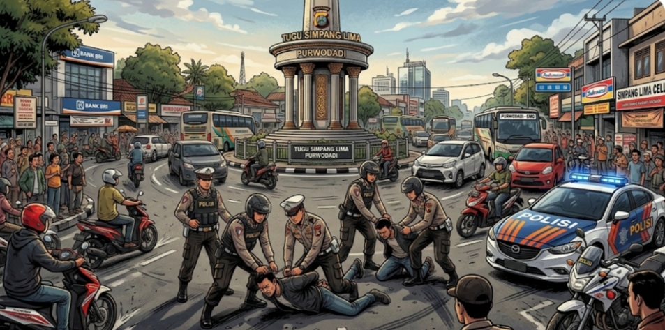 Grobogan, suarajateng.co.id – Peristiwa dugaan salah tangkap dan penganiayaan yang melibatkan oknum anggota Satresnarkoba Polres Grobogan menjadi sorotan publik. Insiden tersebut terjadi pada Selasa, 3 Februari 2026 sekitar pukul 02.30 WIB di Jalan R. Suprapto, tepatnya di kawasan bundaran Simpang Lima, Purwodadi.